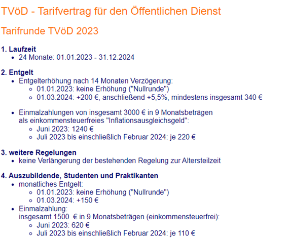 Frühlingsgefühle kamen auch auf, aber ganz anderer Art! Nach der Tarifrunde TVöD 2023 wurden Entgelterhöhungen festgelegt, die ab dem 01. März 2024 in Kraft traten, beginnend mit +200 €, +5,5% anschließend. Zeitgleich entfällt jedoch das beitragsfreie „Inflationsausgleichsgeld“ von 220 €.